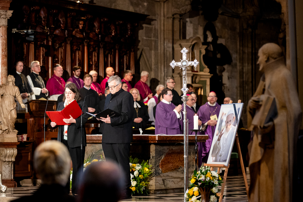 Mit einem "Requiem für seine Heiligkeit Papst Franziskus" nahm Österreich am Montagabend offiziell Abschied vom Papst. Dem Gottesdienst stand der Vorsitzende der Österreichischen Bischofskonferenz, Erzbischof Franz Lackner vor. Mit ihm konzelebrierten die heimischen Bischöfe. Die Politik war an erster Stelle von Bundespräsident Alexander Van der Bellen und Bundeskanzler Christian Stocker vertreten. Zahlreiche Gläubige gaben dem Papst im vollen Dom ebenfalls die letzte Ehre